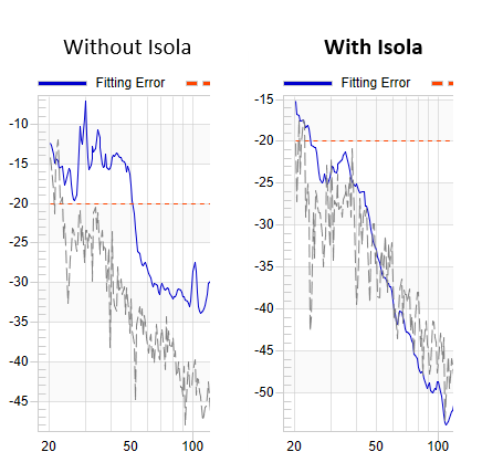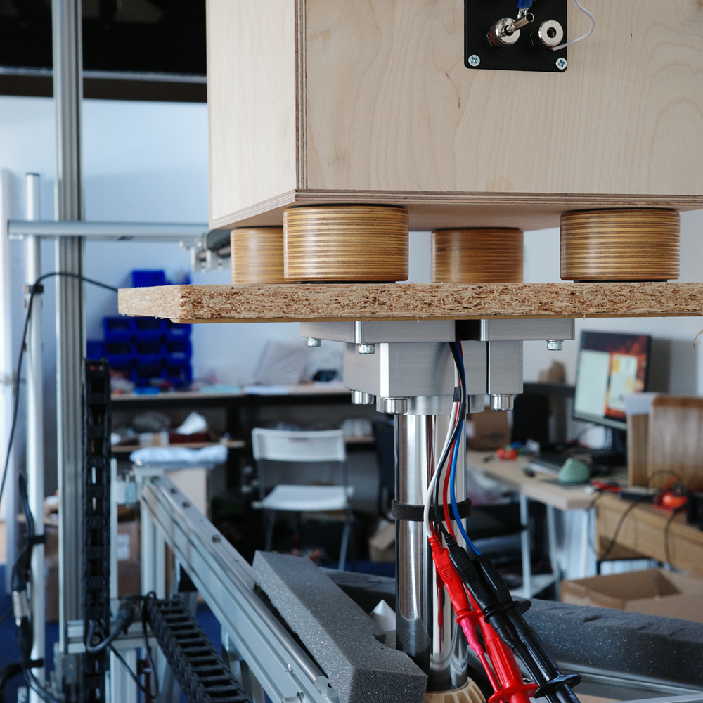 At Audio First Designs, we provide loudspeaker measurement services using a Klippel NFS. The speaker under test is placed on the machine's platform, and a robotic arm holding a microphone scans the acoustic output around the speaker. In some cases — particularly with a large woofer in a not very well-braced cabinet — the mechanical vibrations of the speaker can be transmitted to the microphone via the robotic arm, compromising measurement accuracy. By adding Isola to the setup, the fitting error is significantly reduced during data processing, ensuring highly accurate, reliable results.