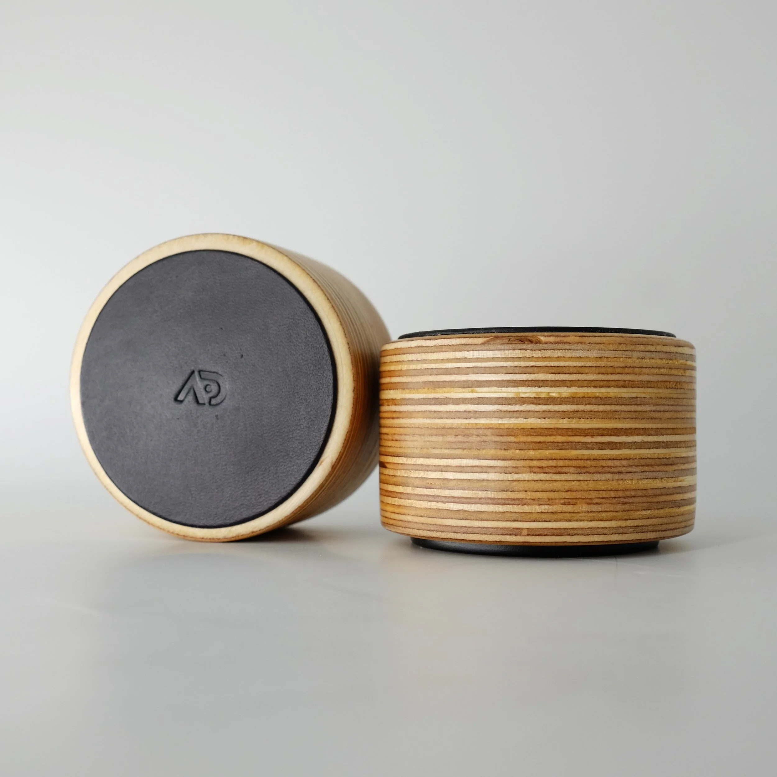 Vibration isolation feet with suspension structures housed inside the birch plywood casing. The soft leather on top serves as a cushion between the Isola and the device above. The suspension allows the casing to move freely both on the horizontal plane and vertically, effectively decoupling the vibration transmission from the base to the top - or vice versa.